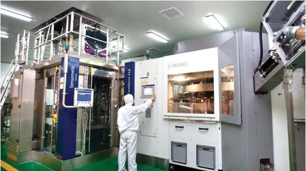 西王食品包裝二廠車間主任辛東華表示:“這是我們的克朗斯生產(chǎn)線,它可達(dá)到20000瓶/小時(shí)的生產(chǎn)速度,生產(chǎn)效率較普通設(shè)備提高了近70倍,整條線運(yùn)行期間只需要6到8名工人即可。它最大的特點(diǎn)是打破了傳統(tǒng)的吹瓶灌裝分離模式,實(shí)施全程無(wú)間隔灌裝,保證了產(chǎn)品質(zhì)量和安全。”